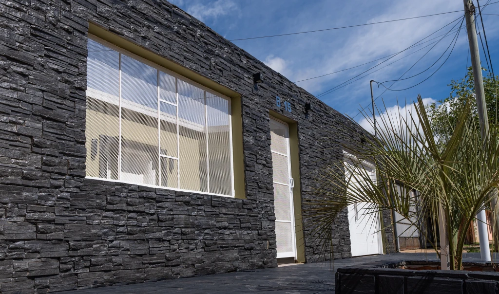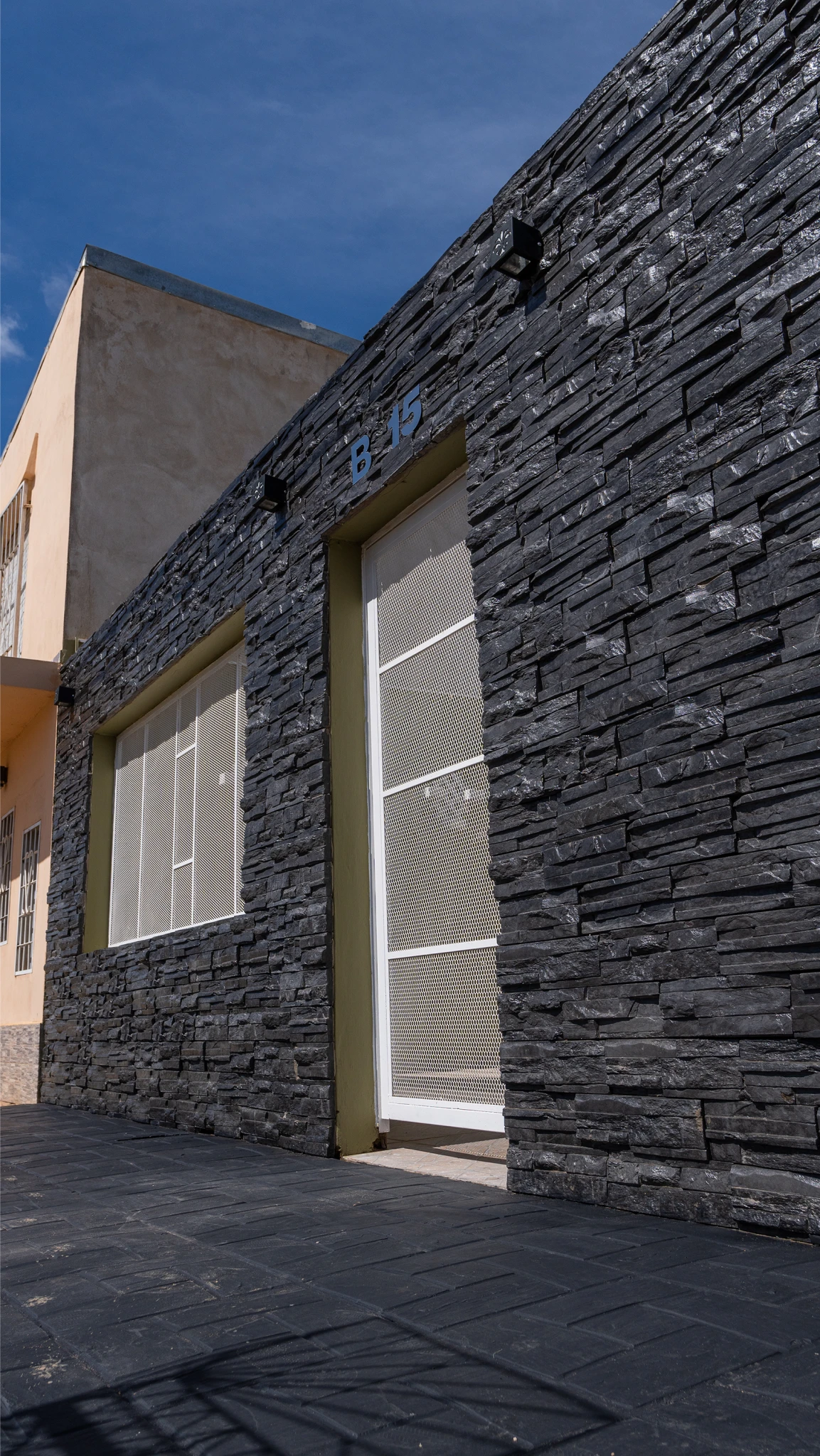Este modelo ofrece la reproducción singular de listones de imitación piedra apilada. Cuenta con un ángulo de salida importante y expresa una terminación natural agradable.